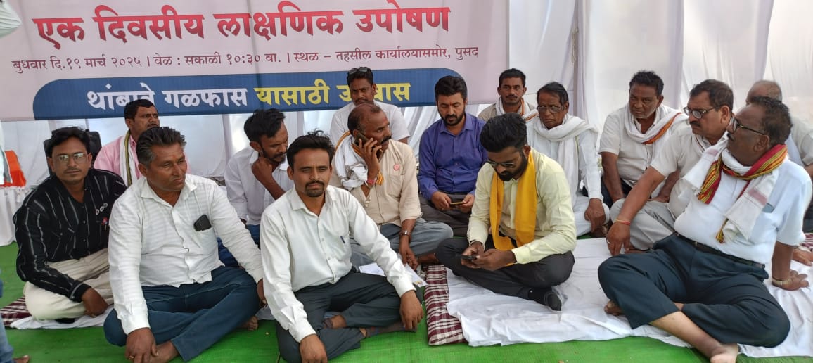 पुसद दि 19 आत्महत्याग्रस्त कुटुंबाला सामूहिक श्रद्धांजली देण्यासाठी एक दिवस उपवास ठेवून शेतकऱ्यांच्या प्रतिकृतज्ञता व्यक्त करण्यासाठी वसंतराव नाईक यांच्या पूर्णकृती पुतळ्याला माल्यार्पण शरद मैंद अध्यक्ष पुसद अर्बन बँक मनीष जाधव शेतकरी नेते यांनी करून एकदिवशीय पोशिंद्यासाठी आत्मक्लेश अन्नत्याग आंदोलन करून तहसील कार्यालयासमोर व हा निषेध दिन म्हणून एकदिवशीय उपवास आंदोलन अहिंसात्मक पद्धतीने होत केला सकाळी 10 पासून तर सायंकाळी 5 :30 साडेपाच वाजेपर्यंत हे अन्नत्याग आंदोलन तहसील कार्यालयासमोर ठेवले यात शेतकऱ्यानीं सहभाग नोंदवला दिवसभर या आंदोलन ठिकाणी शरद मैंद, अविनाश पोलकट, मनीष जाधव विश्वास भवरे, व मान्यवरांनी मनोगत व्यक्त केले