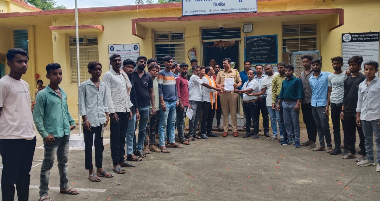 माहूर – केरोळी फाटा ता. माहूर येथील संत सेवालाल महाराज यांच्या धार्मिक ध्वजाची वारंवार विटंबना करणाऱ्या इसमा विरुद्ध योग्य ती कारवाई करून बंजारा समाजाचे श्रद्धास्थान असलेल्या पांढऱ्या ध्वजाचे संरक्षण करा अन्यथा तीव्र जन आंदोलन उभारणार असल्याचा इशारा गोर सेना तालुकाध्यक्ष प्रफुल जाधव यांनी पोलीस निरीक्षक माहूर यांना सादर केलेल्या निवेदनात दिला आहे. माहूर तीर्थक्षेत्राच्या पायथ्याशी असलेल्या केरोळी फाटा येथे रुई हडसनी जाणाऱ्या रोड लगत माळरान जमिनीवर गेल्या शेकडो वर्षापासून बंजारा समाजाचे श्रध्दास्थान असलेले संत सेवालाल महाराज यांचा पांढरा ध्वज आहे. परंतु जाणीव पूर्वक वारंवार बंजारा समाजाचे श्रद्धास्थान असलेला पांढरा ध्वज काढून फेकून देत काही इसम धार्मिक भावना दुखावत असल्याचा आरोप निवेदनात केला आहे. केरोळी फाटा ता. माहूर येथील संत सेवालाल महाराज यांच्या धार्मिक ध्वजाची वारंवार विटंबना करणाऱ्या इसमा विरुद्ध योग्य ती कारवाई करून त्यांना कायदेशीर समज देऊन पाबंद करण्यात यावे व बंजारा समाजाचे श्रद्धास्थान असलेल्या पांढऱ्या ध्वजाचे संरक्षण करण्यात यावे अन्यथा गोर सेनेच्या वतीने व संत सेवालाल महाराज भक्तांच्या वतीने तीव्र जन आंदोलन छेडण्यात येईल असा इशारा निवेदनात देण्यात आला आहे. यावेळी गणेश राठोड, यादव आडे, प्रल्हाद राठोड, कृष्णा राठोड, प्रल्हाद कारभारी, विठ्ठल राठोड, देवानंद भांडवले, गणेशभाऊ मित्र मंडळ शेकापूर अदिसह शेकडो कार्यकर्ते उपस्थित होते.