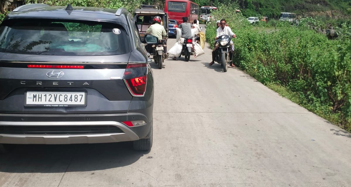 मालवाडा घाटात ट्राफिक जाम नवरात्र उत्सवात होणार वाहतुकीची कोंडी ट्राफिक जाम मध्ये अडकले माहूरचे तहसीलदार.